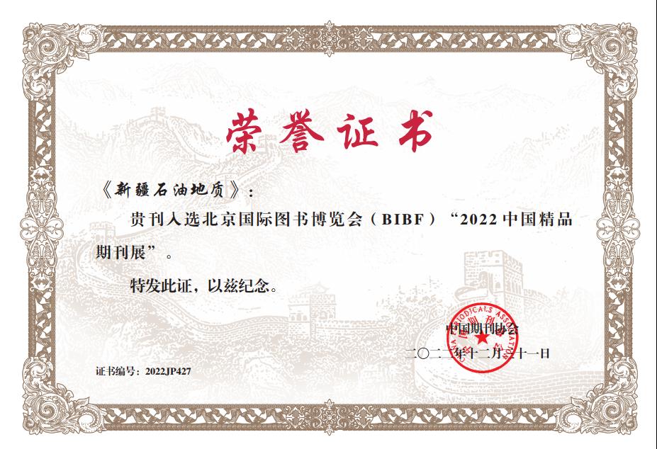 近期,《新疆石油地質》入選北京國際圖書博覽會(BIBF)“2022 中國精品期刊展”。這次展會主要推薦黨的十八大以來新時代新發展新成就主題宣傳精品期刊和中國科技期刊卓越行動計劃入選期刊。
