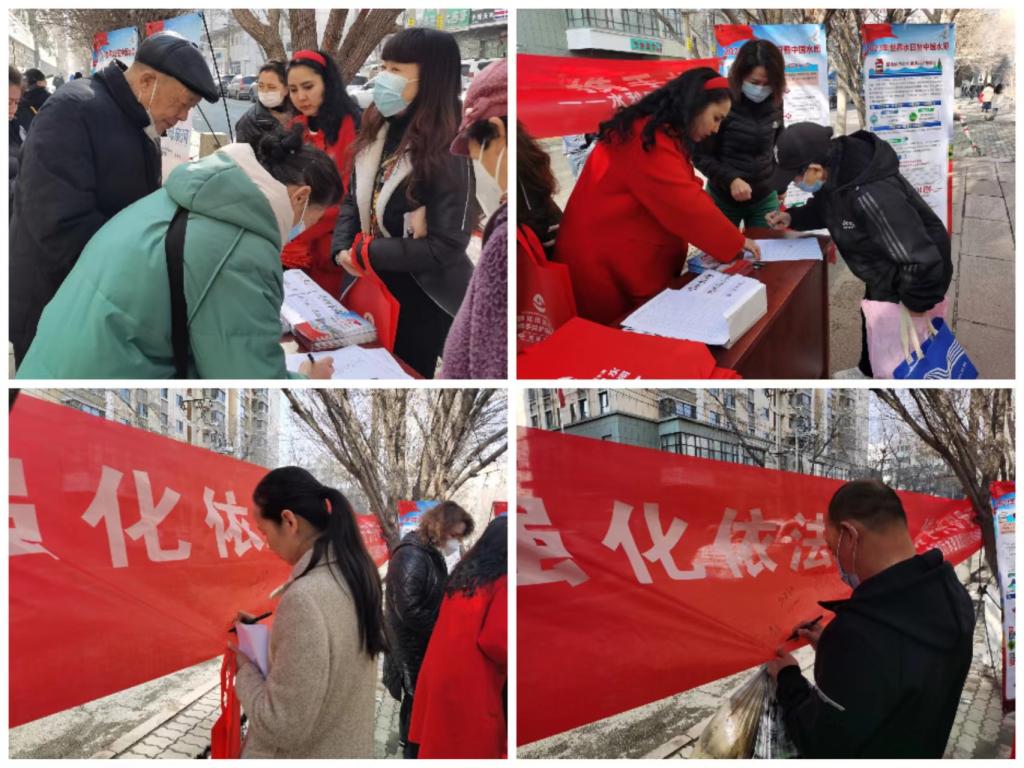 為貫徹落實黨的二十大精神,推動新階段水利高質量發展,22日上午,新疆水利學會和水資源規劃研究所在烏魯木齊市開展了 2023 年“世界水日”“中國水周”宣傳活動,辦公樓前及院子懸掛宣傳條幅,張貼節水主題海報,設立展板,組織會員為路過的群眾散發“世界水日”“中國水周”主題宣傳材料和環保帆布袋,提醒大家在生活中注意節約用水、保護水資源和實際節水的小妙招,大家紛紛在橫幅上簽上自己的名字,加入到節水和護水的行列中來,要從節約點滴水開始。
