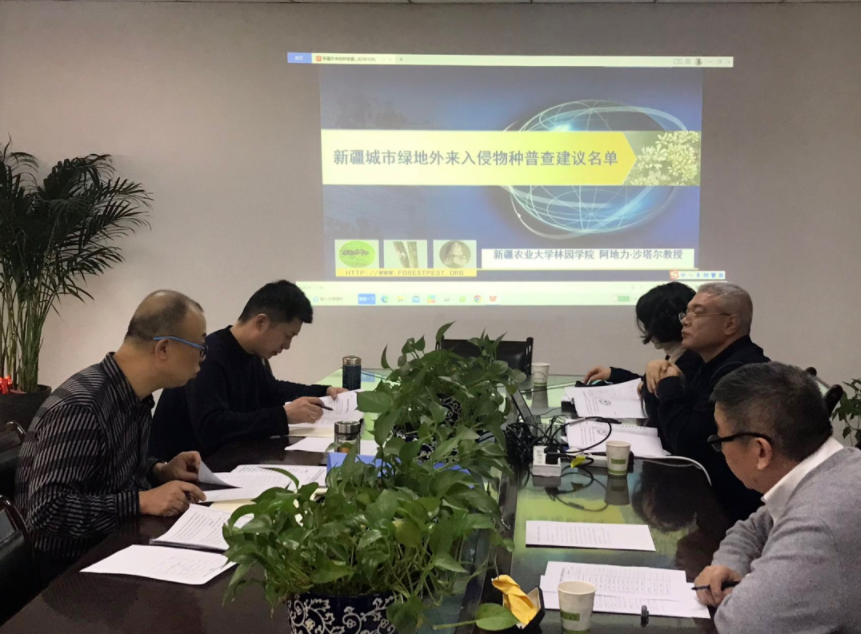 1月31日下午,受自治區城市管理執法監督局邀請,新疆風景園林學會秘書處組織學會第六屆理事會理事長沈俊剛教授、新疆農業大學林學與風景園林學院阿迪力?沙塔爾教授、烏魯木齊市林業有害生物防治檢疫站(市草原監理站)穆朝蕊工程師參加了新疆城市綠地外來入侵物種論證會。自治區城市管理執法監督局黨支部書記陳本斌參加會議。論證會由四級調研員錢曉華主持。