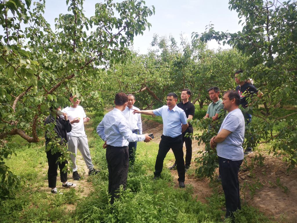 18日上午,在托克遜縣夏鎮和郭勒布依鄉杏生產示范園,托克遜縣林草局工作人員為與會代表詳細介紹了各個示范園的基本情況,參會代表通過實地參觀對當地的杏產業栽培現狀有了深入的了解,并就當地現行的模式和栽培中存在的問題等進行了實地交流和探討。