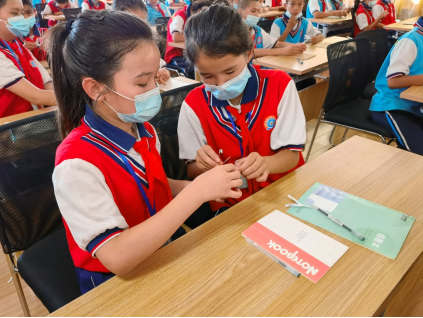 課堂伊始,康博士就很用心地為每個(gè)同學(xué)準(zhǔn)備了翅果折紙、曲別針和魔術(shù)貼。同學(xué)們拿到之后便好奇地觀察了起來(lái)。接著她向同學(xué)們提出了一個(gè)問(wèn)題:我們?nèi)祟惾绻胍眯校梢猿俗疖?chē)、汽車(chē)甚至飛機(jī)。種子它們也想去旅行,它們沒(méi)有手沒(méi)有腳,怎么去旅行呢?這些種子是坐汽車(chē)、火車(chē)還是飛機(jī)出行呢?這個(gè)問(wèn)題引發(fā)了同學(xué)們的好奇心,同學(xué)們紛紛猜測(cè),大膽回答。