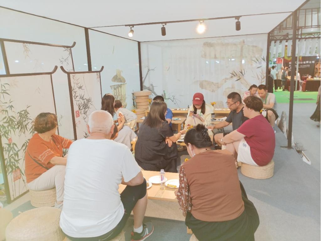 逛展市民品嘗雪菊茶現場