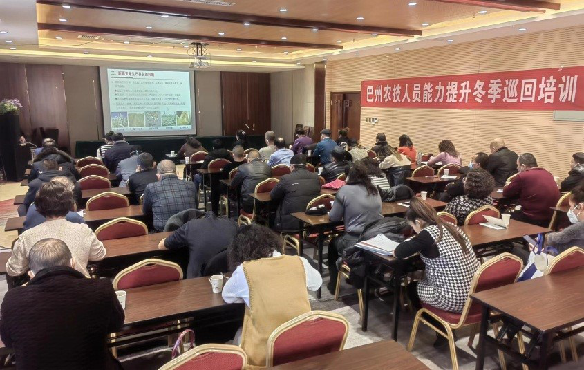 本次培訓(xùn)采取線上+線下教學(xué)形式,來自和碩縣、焉耆縣的縣鄉(xiāng)技術(shù)人員和17個鄉(xiāng)鎮(zhèn)種植大戶100余人在主會場參加培訓(xùn)。