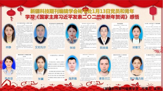 1月13日,新疆科技期刊編輯學會秘書處組織黨員和青年學習《國家主席習近平發(fā)表二〇二三年新年賀詞》。