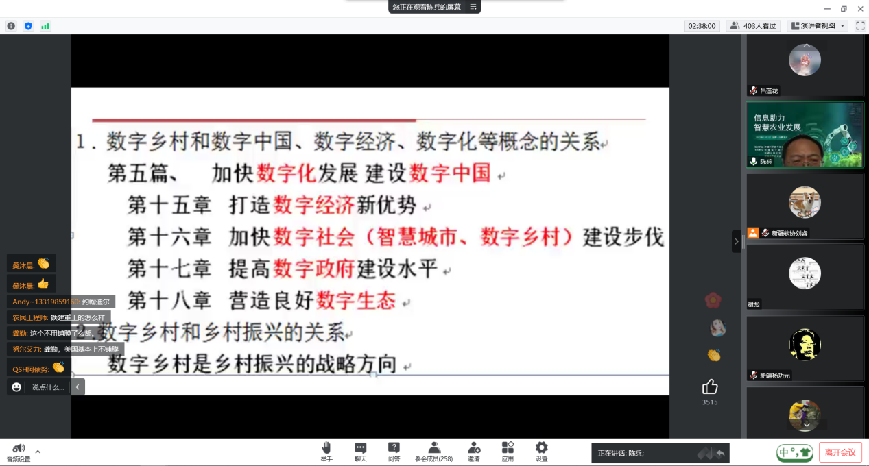 新疆大學教授、碩士生導師,新疆數字經濟研究院副院長陳兵教授圍繞數字鄉村盤點了新疆數字鄉村的發展現狀分析以及新疆數字鄉村建設案例報告。