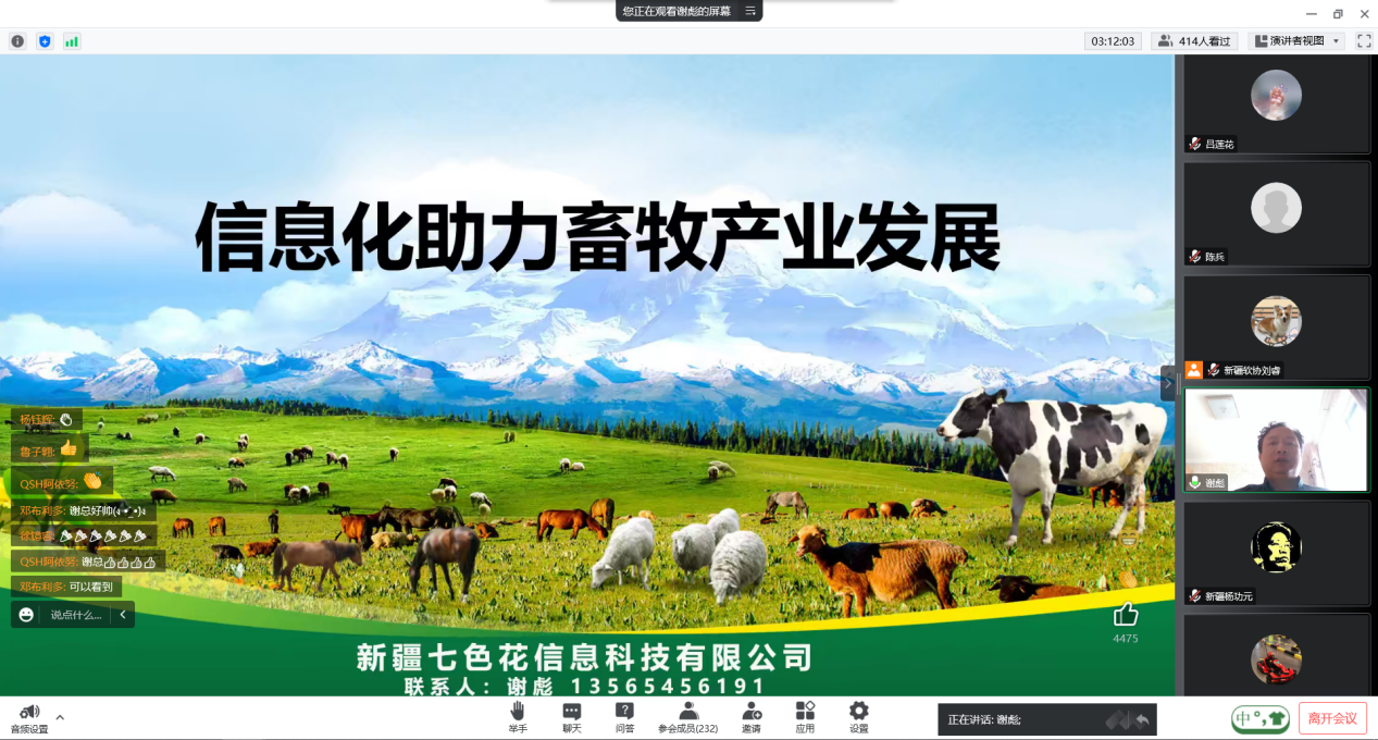 在實踐與案例交流環節,新疆七色花信息科技有限公司董事長謝彪以新疆畜牧業信息化應用場景為例,與大家分享了《信息化助力畜牧產業發展》的實踐經驗與典型做法。新疆農業職業學院信息技術分院黨總支書記楊功元教授介紹了學院的人才培養的情況及做法,提出智慧農業背景下職業院校涉農專業人才培養的建議。