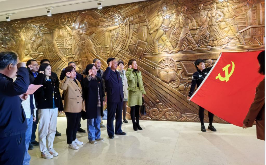 在圖書館前,全體黨員面對鮮紅的黨旗重溫入黨誓詞。大家一致認為,通過參觀學習,加深了對偉大建黨精神的深刻理解,激勵我們攻堅克難、踔厲奮發。