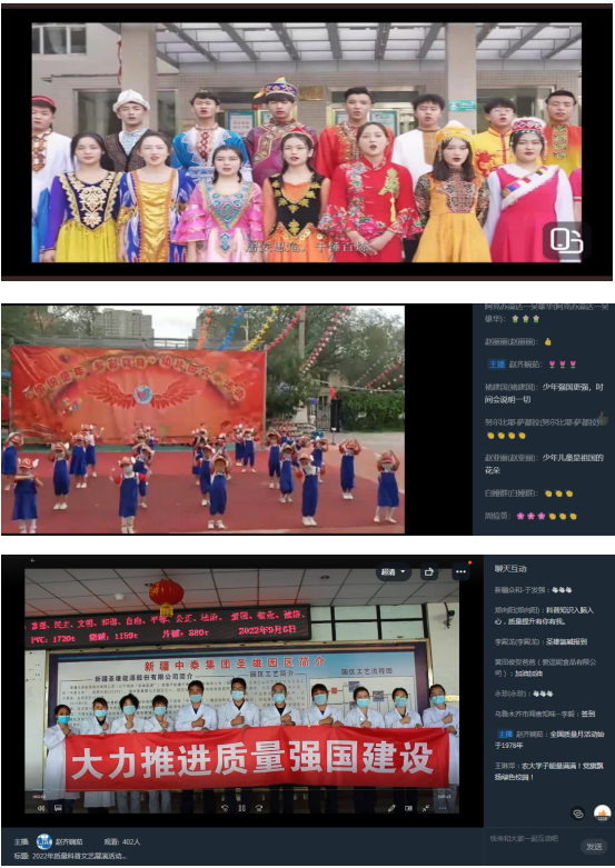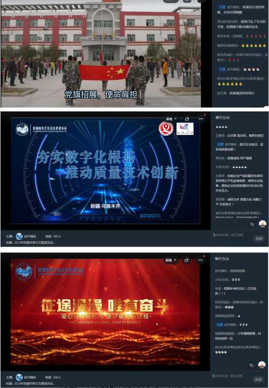 參展節(jié)目由新疆農(nóng)業(yè)大學(xué)、新疆輕工職業(yè)技術(shù)學(xué)院、哈密第十三師職業(yè)技術(shù)學(xué)院、烏市第23幼兒園、新疆圣雄氯堿公司、新疆油田公司、新疆信息產(chǎn)業(yè)公司、和中慧達文化傳媒公司等10個組織選送,展演作品包含活潑可愛的少兒舞蹈、節(jié)奏鮮明的中學(xué)生聲律、激情昂揚的大學(xué)生朗誦、忠誠奉獻的質(zhì)量人心聲。活動過程中主持人積極引導(dǎo)大家認識和掌握質(zhì)量新知識、科學(xué)新理念,與線上觀眾充分互動,起到了寓教于樂、普及科學(xué)的效果。同步組織的有獎知識競答活動得到了大家的廣泛參與,展演活動共計828人參與。