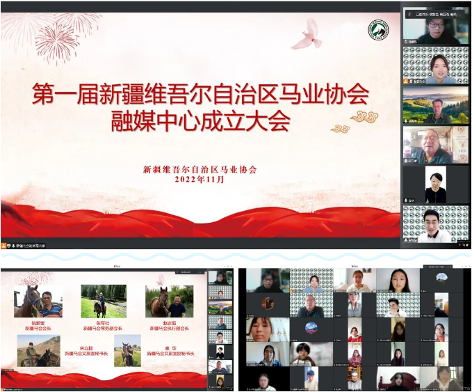 為更好地宣傳推廣新疆馬產(chǎn)業(yè),充分展示全區(qū)與馬相關(guān)的故事文化,推介馬科研成果與產(chǎn)品,2022年11月6日,新疆馬業(yè)協(xié)會(huì)以中國(guó)記者節(jié)為契機(jī),在線召開(kāi)第一屆新疆馬會(huì)融媒中心成立大會(huì),協(xié)會(huì)會(huì)長(zhǎng)姚新奎、常務(wù)副會(huì)長(zhǎng)張軍社、執(zhí)行副會(huì)長(zhǎng)趙志恒及第一屆新疆馬會(huì)融媒中心全體成員參加此次會(huì)議。