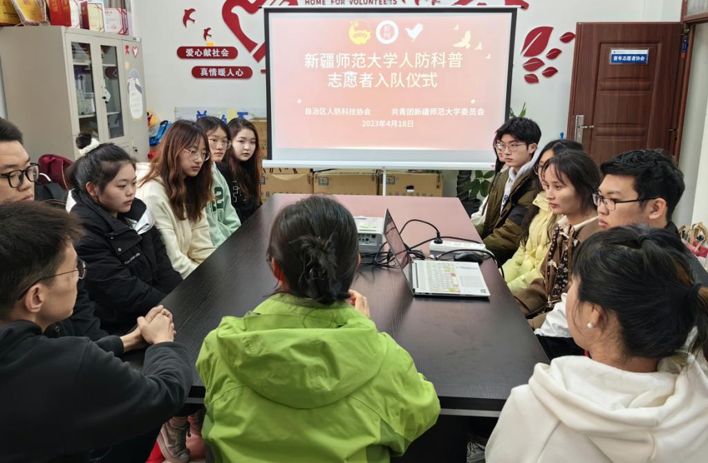為充分發(fā)揮新疆人防科技協(xié)會(huì)開(kāi)放型、樞紐型、平臺(tái)型組織優(yōu)勢(shì),普及國(guó)防人防科學(xué)知識(shí),傳播國(guó)防人防科學(xué)思想,弘揚(yáng)人防建設(shè)重要性,結(jié)合中國(guó)科協(xié)《關(guān)于組織實(shí)施進(jìn)一步做好科技志愿服務(wù)有關(guān)工作的通知》及自治區(qū)科協(xié)相關(guān)要求。4月18日,新疆人防科技協(xié)會(huì)秘書(shū)處一行來(lái)到新疆師范大學(xué)開(kāi)展國(guó)防人防科普志愿者師范大學(xué)分隊(duì)成立儀式。新疆師范大學(xué)校團(tuán)委副書(shū)記王俊淇、校團(tuán)委辦公室主任汪艷霞以及10名學(xué)生志愿者參加了國(guó)防人防科普志愿者新疆師范大學(xué)分隊(duì)成立儀式活動(dòng)。