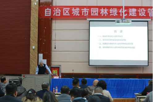 新疆農(nóng)業(yè)大學(xué)林學(xué)與風(fēng)景園林學(xué)院院長(zhǎng)、教授阿迪力?沙塔爾做了新疆城市綠地外來(lái)入侵物種的識(shí)別與防治的報(bào)告。