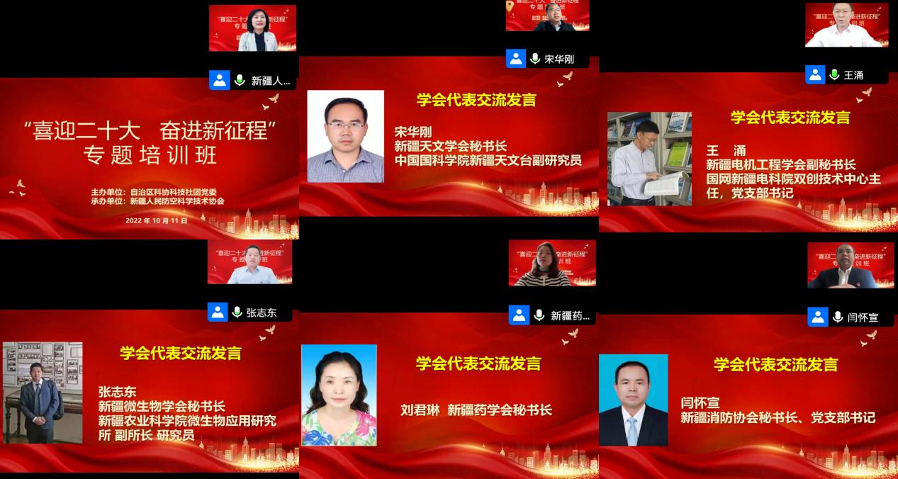 2022年10月11日上午,自治區(qū)科技社團黨委舉辦了“喜迎二十大 奮進新征程”線上專題培訓(xùn)會。會議由新疆人防協(xié)會秘書長劉健主持,新疆畜牧獸醫(yī)學(xué)會積極組織會員通過視頻形式參加會議。