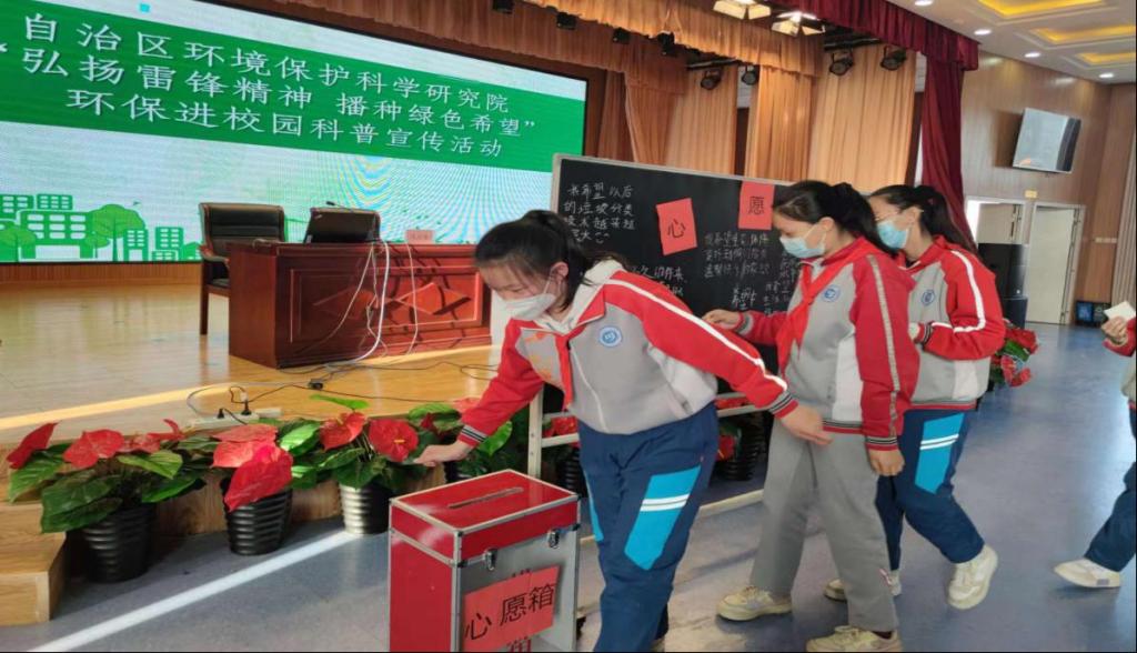 為深入學習貫徹生態文明思想,大力推進生態文明建設,提升全民生態環境科學素質,圍繞“美麗新疆·青春行動”整體部署和自治區生態文明建設目標任務,根據自治區團委《關于在區直機關開展“學雷鋒”志愿服務月活動的通知》要求,聚焦提升青少年生態文明教育,近日自治區環科院科技工作者赴烏魯木齊市第113中學開展了“弘揚雷鋒精神 播種綠色希望”環??破者M校園活動。