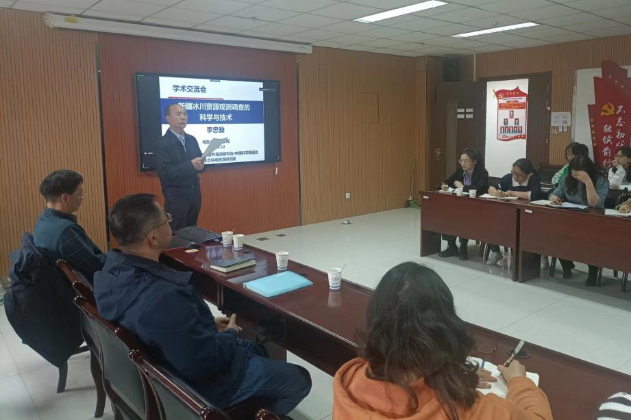 報告會由新疆氣候中心主任張太西主持,新疆天山國家野外觀測研究站、中國科學院西北生態環境資源研究院李忠勤研究員以《新疆冰川觀測調查的科學技術》為題,介紹了全球氣候變化的大背景下是如何開展冰川研究的以及研究調查時采用的技術方法,引起聽眾的廣泛交流和熱烈討論。