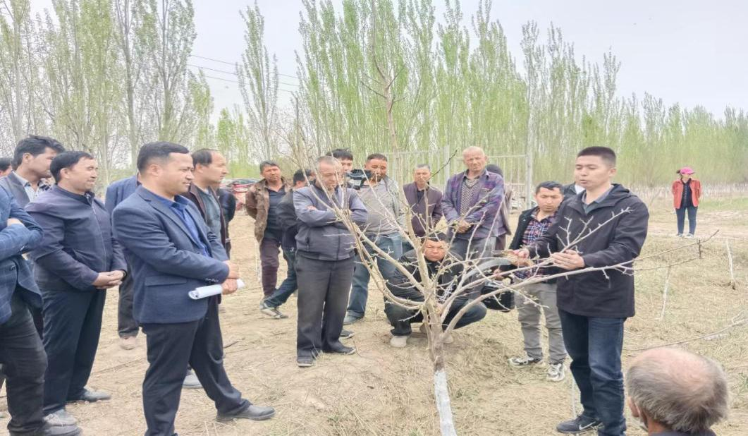 為增加村民收入,阿克蘇地區(qū)拜城縣賽里木鎮(zhèn)大力發(fā)展林果業(yè),采取科學(xué)栽培技術(shù),種植新梅1700余畝。近期,果農(nóng)們發(fā)現(xiàn),當前已經(jīng)是新梅樹開花的季節(jié),但當?shù)氐男旅窐淙匀混o悄悄地沒有開花跡象,這讓大家又著急又發(fā)愁。了解到這一情況之后,2023年4月25日,新疆園藝學(xué)會專家、新疆林科院經(jīng)濟林研究所阿卜杜許庫爾·牙合甫同志迅速到拜城縣賽里木鎮(zhèn)英買里村,為當?shù)?0余名林業(yè)站技術(shù)人員及果農(nóng)開展了新梅提質(zhì)增效現(xiàn)場示范培訓(xùn)。