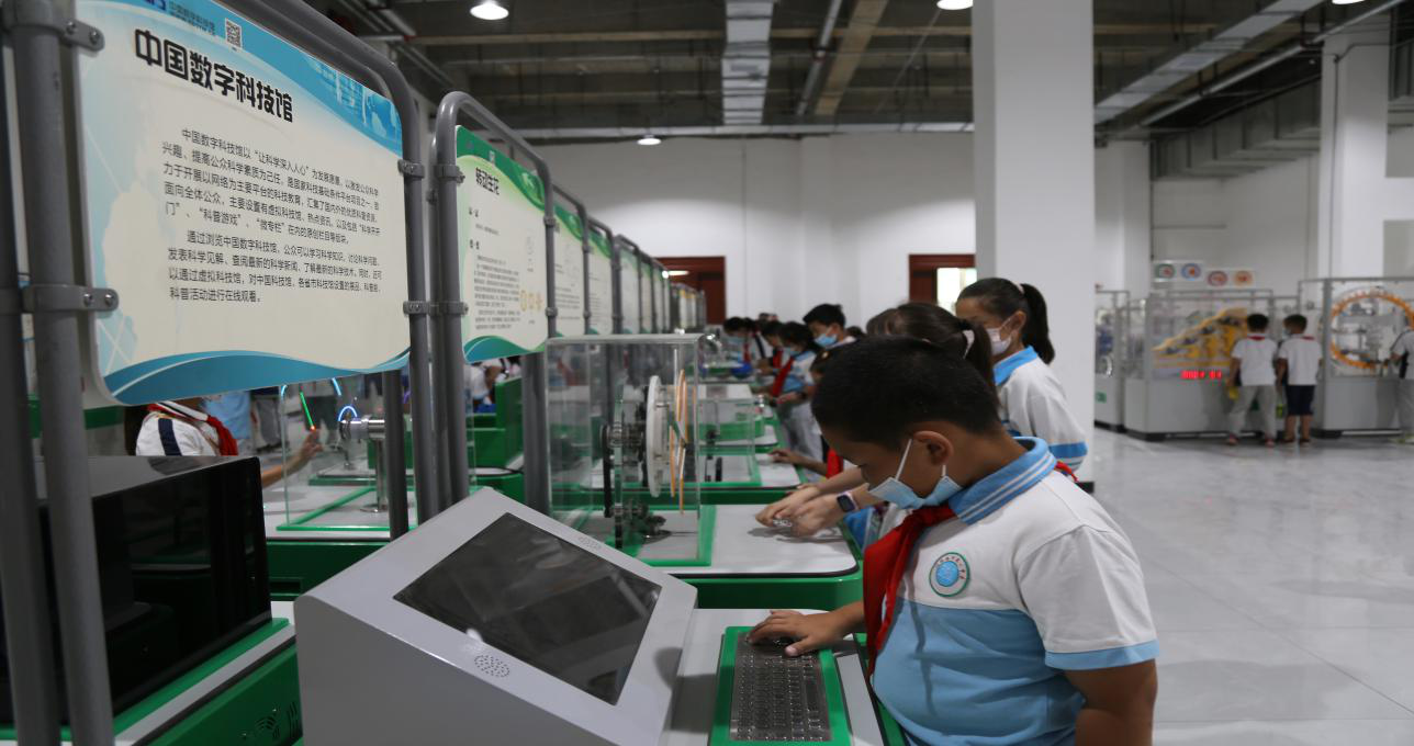 阿勒泰地區(qū)開展“童心向黨 科技逐夢(mèng)”夏令營(yíng)活動(dòng) ,圖為小學(xué)生參觀阿勒泰科技館
