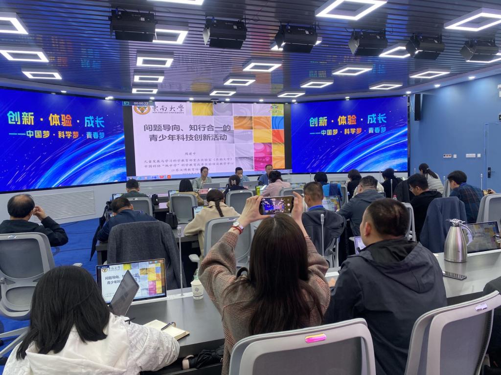 中國科協“做中學”科學教育改革實驗項目教學中心(東南大學)周建中副主任,帶來了題為《問題導向、知行合一的青少年科技創新活動》的講座,介紹了科技創新活動的構成、科學研究與工程設計流程,強調知行合一,倡導做中學、用中學、創中學,注重引導學生參與學科探究活動,開展跨學科實踐,經歷發現問題、解決問題、建構知識、運用知識的過程,讓認識基于實踐、通過實踐得到提升。