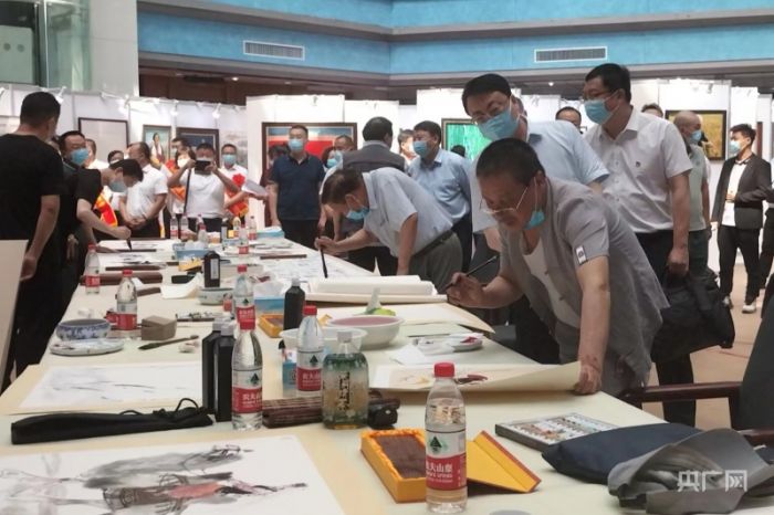 在“喜迎二十大 奮進新征程”科學與藝術作品展中,共展出以科學與藝術為主題的書畫作品150余幅,作品特別聚焦新疆近年來的科技創新成果,呈現了一系列科技引領高質量發展的新成就。