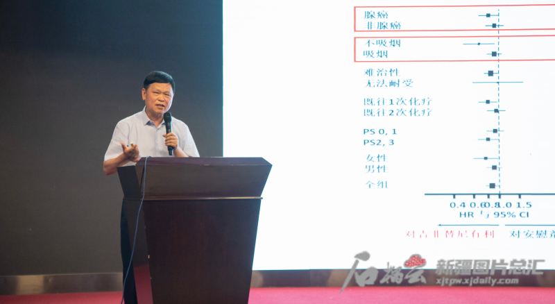 7月19日,中國工程院院士徐兵河為新疆醫(yī)科大學(xué)附屬腫瘤醫(yī)院(自治區(qū)腫瘤醫(yī)院)醫(yī)護(hù)人員授課。石榴云/新疆日?qǐng)?bào)記者 高旭攝