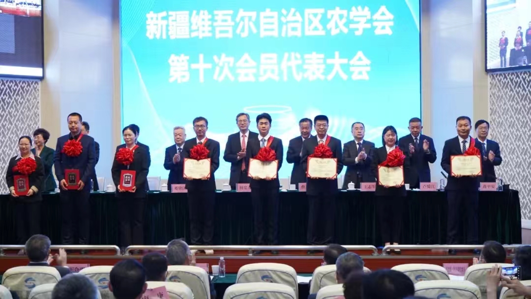 曹志文傳達了自治區黨委書記馬興瑞重要批示,王志軍宣讀了《關于同意新疆維吾爾自治區農學會換屆的批復》,高培香宣讀了《關于成立農科學會聯合體的倡議》。與會領導為新疆農學會優秀論文獲獎者頒發了證書。