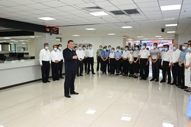 7月12日至15日,中共中央總書記、國家主席、中央軍委主席習近平在新疆考察。這是12日下午,習近平在烏魯木齊國際陸港區,同工作人員及現場辦事人員親切交流。新華社記者 謝環馳 攝