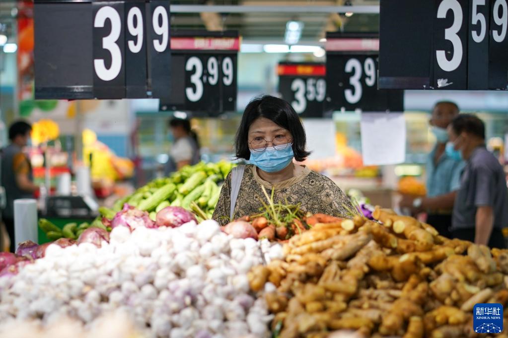市民在江蘇省無錫市經開區華潤萬家超市購物(2022年7月7日攝)。江蘇省無錫市在做好疫情防控的同時,積極制定相關方案,制作城市保供地圖,組織大型商超、市場正常運營,全力保供穩價,端穩市民“菜籃子”。新華社記者 李博 攝
