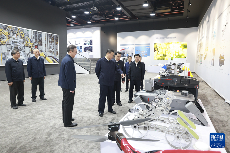 4月22日至24日,中共中央總書記、國家主席、中央軍委主席習近平在重慶考察。這是22日下午,習近平參觀重慶科技創新和產業發展成果展示。新華社記者 王曄 攝