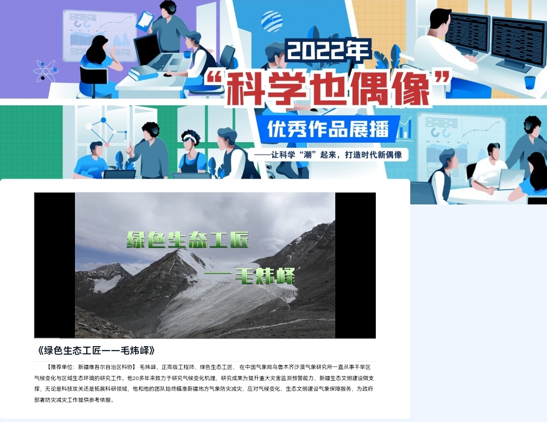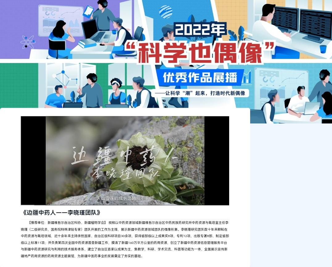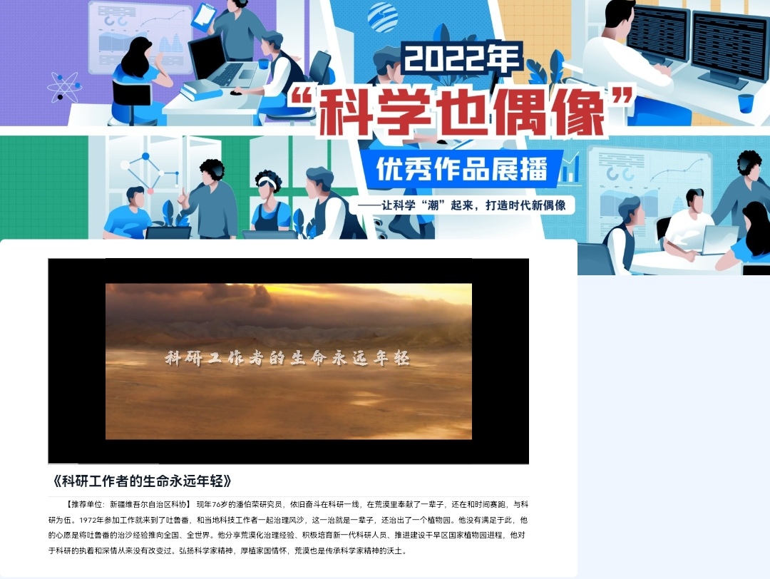 近日,中國科協公布2022年“科學也偶像”短視頻征集活動獲獎作品名單,新疆科協組織推薦的多部作品獲獎,新疆科協榮獲“最佳組織單位”稱號。