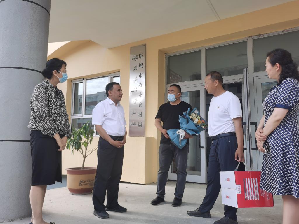 在第六個“全國科技工作者日”來臨之際,帶著對廣大科技工作者的關心,5月27日下午,塔城市委常委朱馬哈孜·瑪吾提與塔城市科協黨組書記、主席屈小玲一行前往塔城市農業農村局、塔城市疾控中心走訪慰問董慶國、陳玲等優秀科技工作者代表,市衛健委黨組書記張芳、農業農村局黨組成員周永金與疾控中心負責人等參加慰問。