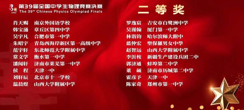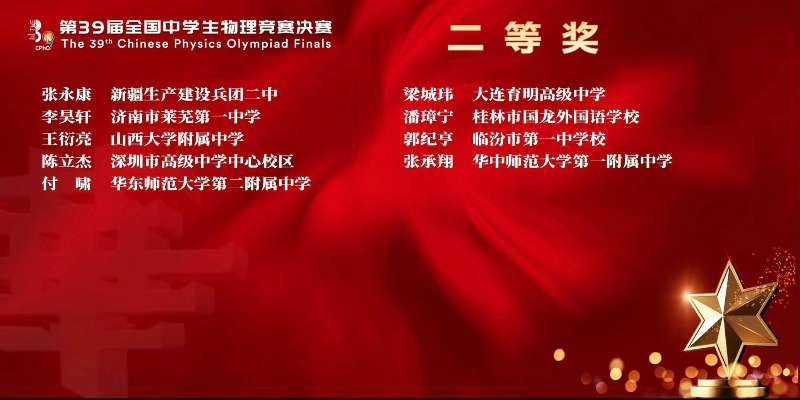2022年11月7日,第39屆全國中學生物理奧林匹克競賽決賽在湖北武漢市閉幕。在全國決賽中新疆代表隊2名學生獲得全國二等獎(銀牌),8名學生獲得全國三等獎(銅牌),取得了該項競賽舉辦以來新疆歷史最好成績。
