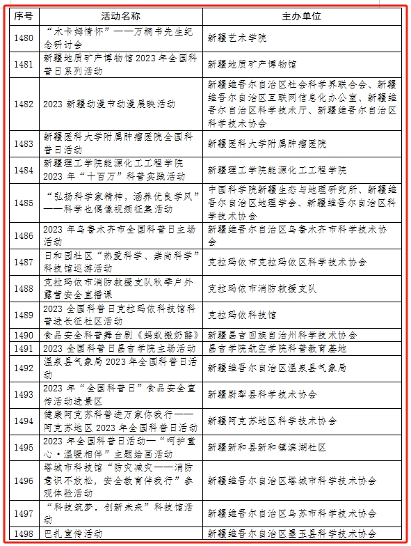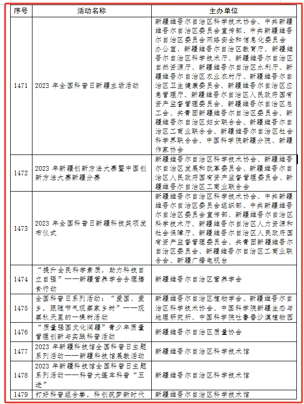 2023年全國科普日活動優秀組織單位名單(新疆)