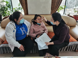 2023年2月25日,在且末縣兩個村的科普宣傳、專家咨詢、現場義診活動結束后,一進賓館大廳就看見一對母女用期待的眼神張望著,看見我們就問:“是自治區來的專家嗎?”原來這位母親聽說自治區來的醫療專家團隊中,有一位眼科專家,她就帶著8歲的女兒阿迪拉來賓館等候。