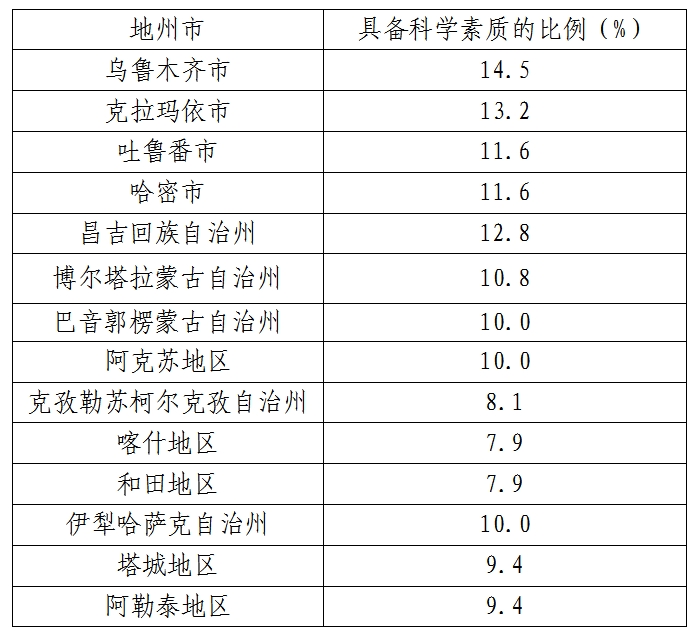 從區(qū)域上看,14個(gè)地州市公民具備科學(xué)素質(zhì)的比例總體呈現(xiàn)穩(wěn)步提升,但各地發(fā)展不平衡的狀況依然存在。