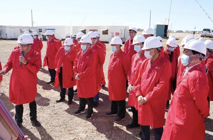 緊接著,院士和專家們來到位于白堿灘區(克拉瑪依高新區)的潔凈能源國家實驗室(籌)中試基地考察。