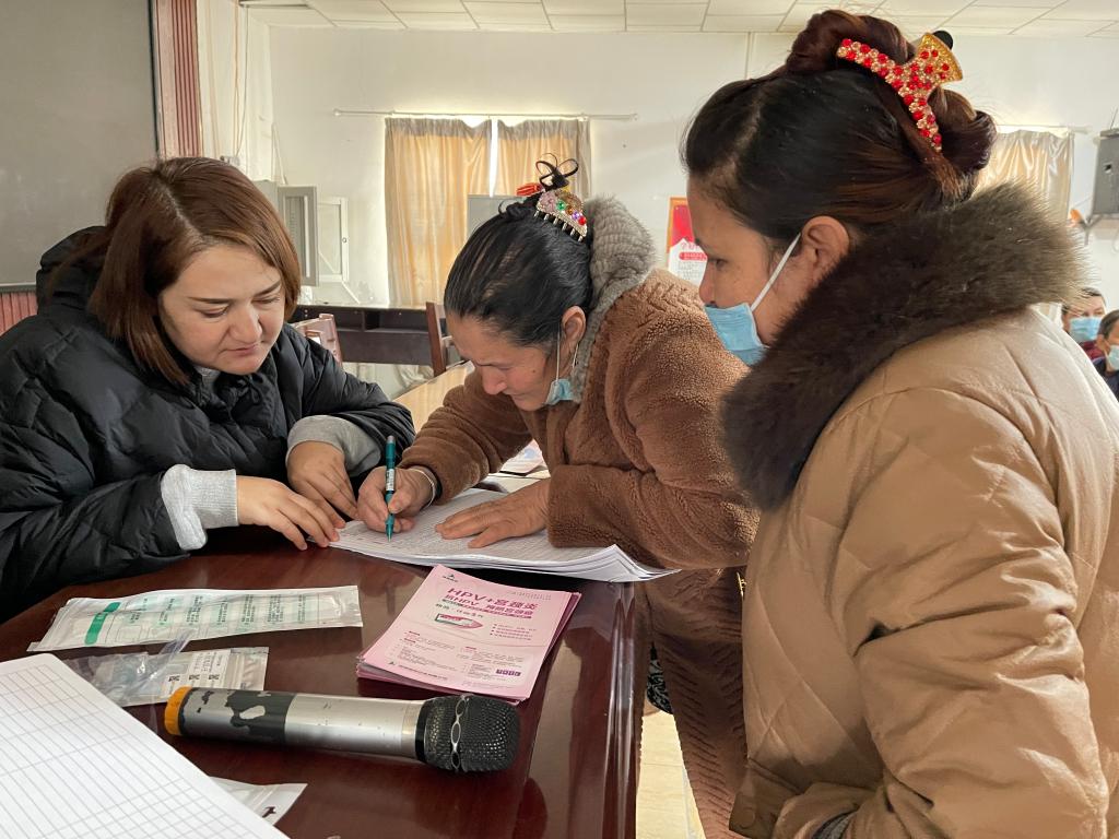 村民圖妮薩罕·喀斯木說:“我患婦科疾病兩年了,每次去烏魯木齊復(fù)查,非常不方便。現(xiàn)在自治區(qū)醫(yī)療專家到家門口開展科普宣傳,還免費(fèi)給我們發(fā)放檢測試劑,真是既省錢又方便,我們從心底里感謝黨和政府的好政策。”