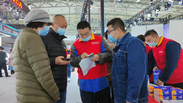 新疆電機工程學會會員單位國網烏魯木齊供電公司黨員服務隊員在新疆國際會展中心車展現場設置活動展臺,同步宣傳購車裝充電樁“一站式”服務