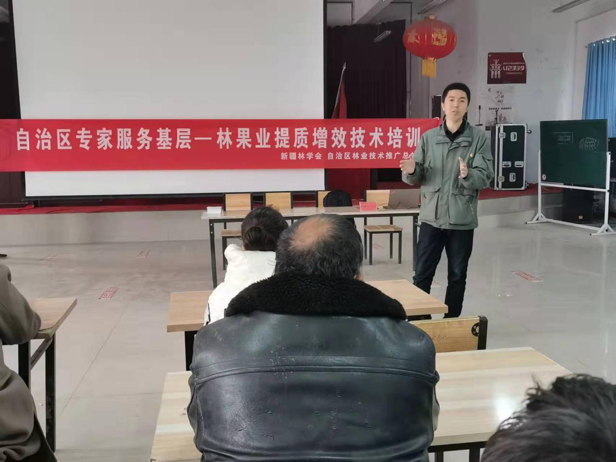 隨后,新疆林學會專家阿卜杜許庫爾·牙合甫在尤喀克奧特貝希村開展了林果業(yè)提質增效技術培訓,為60余名果農講授了核桃栽培管理技術,發(fā)放培訓材料60余份。培訓會上,果農們專心聆聽講課內容,并積極與專家互動交流。培訓結束后,阿卜杜許庫爾·牙合甫見果農們依然不舍得讓自己走,主動把電話和微信留給了果農們,并承諾說:“只要大家需要,可以隨時聯系,我很樂意給大家提供技術指導服務。”果農艾力·克熱木說:“非常感謝自治區(qū)的專家給帶來的核桃栽培管理技術培訓,我從今天的培訓中掌握了新的技術,以后我們遇到問題也可以向專家請教,還要按照專家講的科學方法進行核桃栽培管理,爭取今年核桃有個好的收成。”