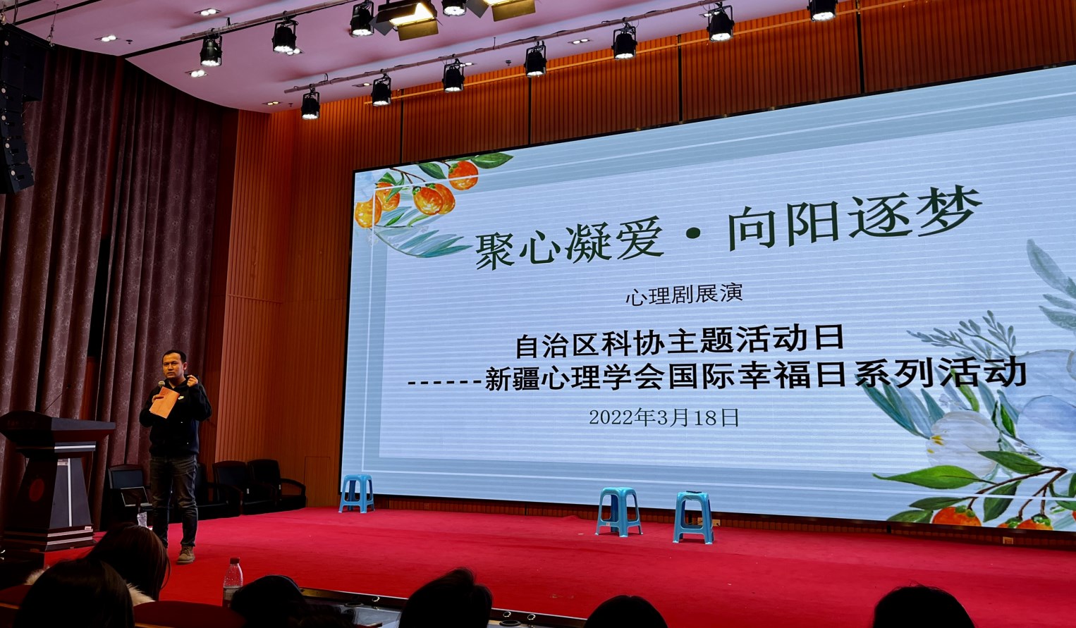 3月18日,新疆心理學會在新疆師范大學后勤樓會議室舉辦了“聚心凝愛·向陽筑夢 ”為主題的心理劇展演活動。當代青年用心理情景劇這種特殊的表現形式展現了自己的幸福,表達了對幸福生活的感激之心。新疆心理學會副秘書長等人參加了本次活動,并對作品進行了專業點評。