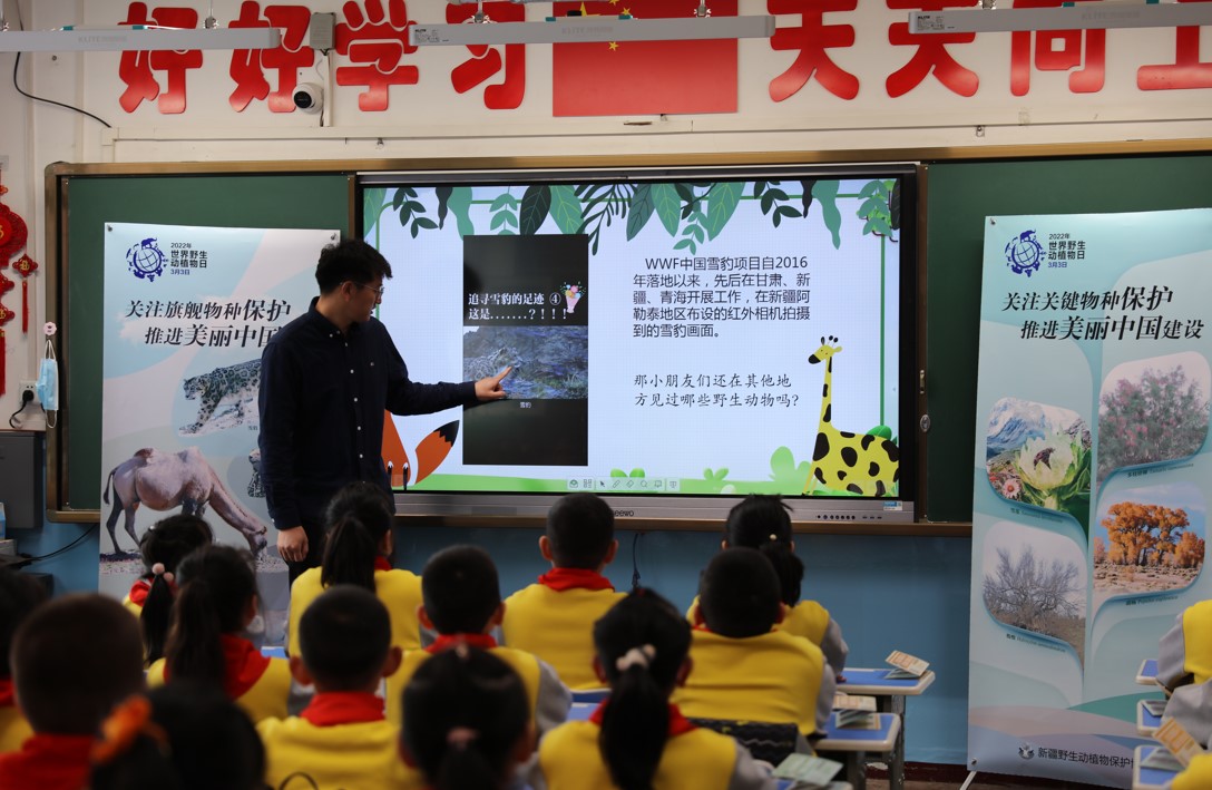 當日下午,“世界野生動植物日”科普活動走進了校園。來自新疆大學生命科學與技術學院的鐘林強博士向烏魯木齊市第三小學的同學們科普旗艦物種的有關知識,讓在校學生從課堂里關注旗艦物種、關注新疆野生動植物保護。