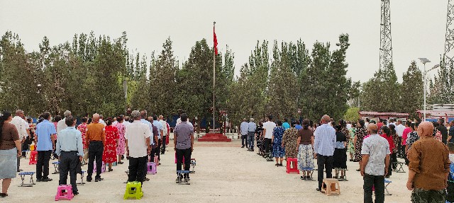 在繁榮村活動現場,上午9:30,全體工作隊同志與農牧民群眾齊聚在村委會舉行“升國旗、唱國歌”儀式。鮮艷的國旗伴隨著雄壯的國歌冉冉升起,大家行注目禮,齊唱國歌,在飄揚的五星紅旗下抒發對中國共產黨、偉大祖國的熱愛之情。