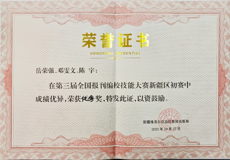 為提升編輯隊伍素質、提升編校人員專業化水平、推動期刊高質量發展,10月27日,來自全疆64家報刊出版單位的50支團隊參加了由自治區黨委宣傳部(新聞出版局)主辦,新疆期刊協會承辦的第三屆全國報刊編校技能大賽新疆區比賽。新疆科技期刊編輯學會團體會員單位——《新疆農業科學》編輯部榮獲團隊優秀獎,并作為團隊優秀獎獲獎代表上臺領獎。