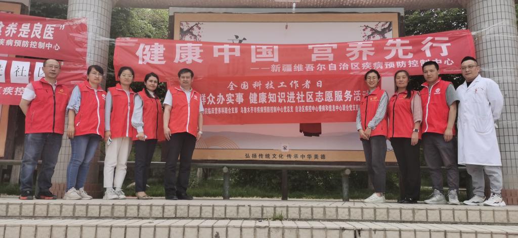 為增強(qiáng)廣大居民對(duì)營(yíng)養(yǎng)健康科普知識(shí)的了解,充分調(diào)動(dòng)全社會(huì)力量共同參與科普工作,發(fā)揮科普志愿服務(wù)隊(duì)在公眾科學(xué)文化素質(zhì)提升服務(wù)的創(chuàng)新作用,以形式多樣的活動(dòng)迎接第七個(gè)全國(guó)科技工作者日到來(lái),5月30日下午,新疆營(yíng)養(yǎng)學(xué)會(huì)、一附院臨床營(yíng)養(yǎng)科聯(lián)合黨支部、烏魯木齊市疾病預(yù)防控制中心黨總支、自治區(qū)疾病預(yù)防控制中心慢病和信息中心聯(lián)合黨支部以“我為群眾辦實(shí)事”為契機(jī)開(kāi)展支部共建主題實(shí)踐活動(dòng),組織黨員、專(zhuān)家、基層營(yíng)養(yǎng)科技工作者和志愿者深入烏魯木齊市水磨溝區(qū)旭東社區(qū)開(kāi)展“我為群眾辦實(shí)事,健康知識(shí)進(jìn)社區(qū)志愿服務(wù)”宣傳活動(dòng)。