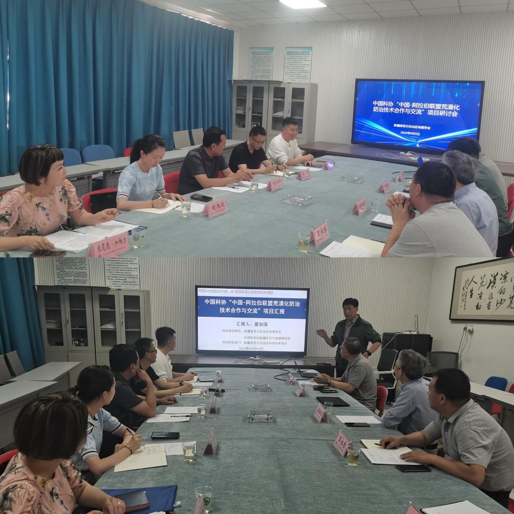 6月5日下午,新疆地理學(xué)會(huì)召開(kāi)了中國(guó)科協(xié)“中國(guó)-阿拉伯聯(lián)盟荒漠化防治技術(shù)合作與交流”項(xiàng)目研討會(huì),理事長(zhǎng)雷加強(qiáng)研究員主持研討會(huì)。自治區(qū)科協(xié)學(xué)會(huì)部部長(zhǎng)艾斯克爾?臺(tái)外庫(kù)力、中科院新疆生地所穆桂金研究員、王永東正高級(jí)工程師、國(guó)際合作處副處長(zhǎng)王猛、新疆大學(xué)地理與遙感科學(xué)學(xué)院院長(zhǎng)張峰教授、新疆地理學(xué)會(huì)秘書長(zhǎng)李生宇正高級(jí)工程師和中科院新疆生地所學(xué)會(huì)部主任米尼熱?加帕爾、業(yè)務(wù)主管李莉參加了會(huì)議。