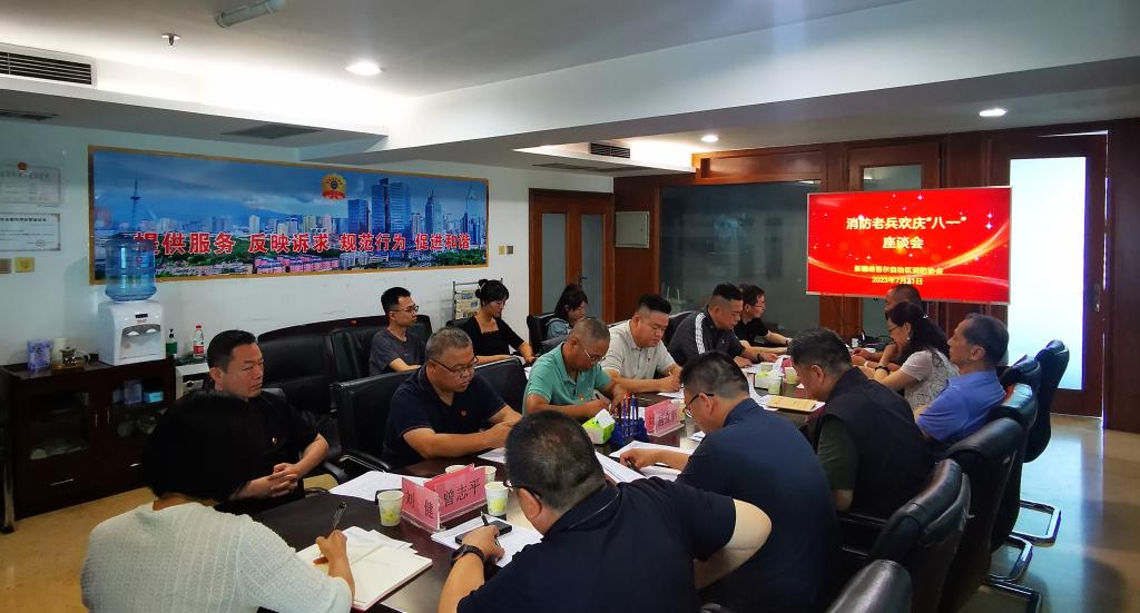 為熱烈慶祝中國人民解放軍建軍96周年,共話新疆消防行業產業發展,2023年7月31日,新疆消防協會舉行“八一”建軍節“消防老兵話消防”座談會。通過座談的方式,認真聽取退役消防老兵的生活、工作情況,從政治、思想、工作、生活等方面給予關心和幫助,切實解決他們所思、所想、所盼的切身問題,凝心聚力推進行業產業高質量發展。新疆消防協會張照雄會長出席座談會并講話。仍耕耘服務在消防事業的退役消防老兵代表居立新、張運、楊志遠、朱筱豐、劉宏星、張軍、李治國、吳星城及部分會員代表和秘書處的全體人員齊聚一堂,追憶紅門往事,暢談消防工作,共同歡慶八一建軍節。