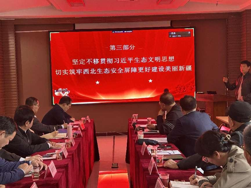 10月16日,新疆地理學(xué)會(huì)黨支部書(shū)記、理事長(zhǎng)雷加強(qiáng)同志為學(xué)會(huì)全體黨員干部講了主題為《深入學(xué)習(xí)和深刻領(lǐng)會(huì)習(xí)近平生態(tài)環(huán)境保護(hù)和荒漠化防治的重要論述》專題黨課,副理事長(zhǎng)吉力力·阿不都外力研究員、包安明研究員、焦黎教授,常務(wù)理事劉康研究員、秘書(shū)長(zhǎng)雷軍研究員、副秘書(shū)長(zhǎng)李生宇研究員,黨支部委員、秘書(shū)處各部門負(fù)責(zé)人、學(xué)會(huì)黨員、青年干部約30人參加了線下線上的集中學(xué)習(xí)。