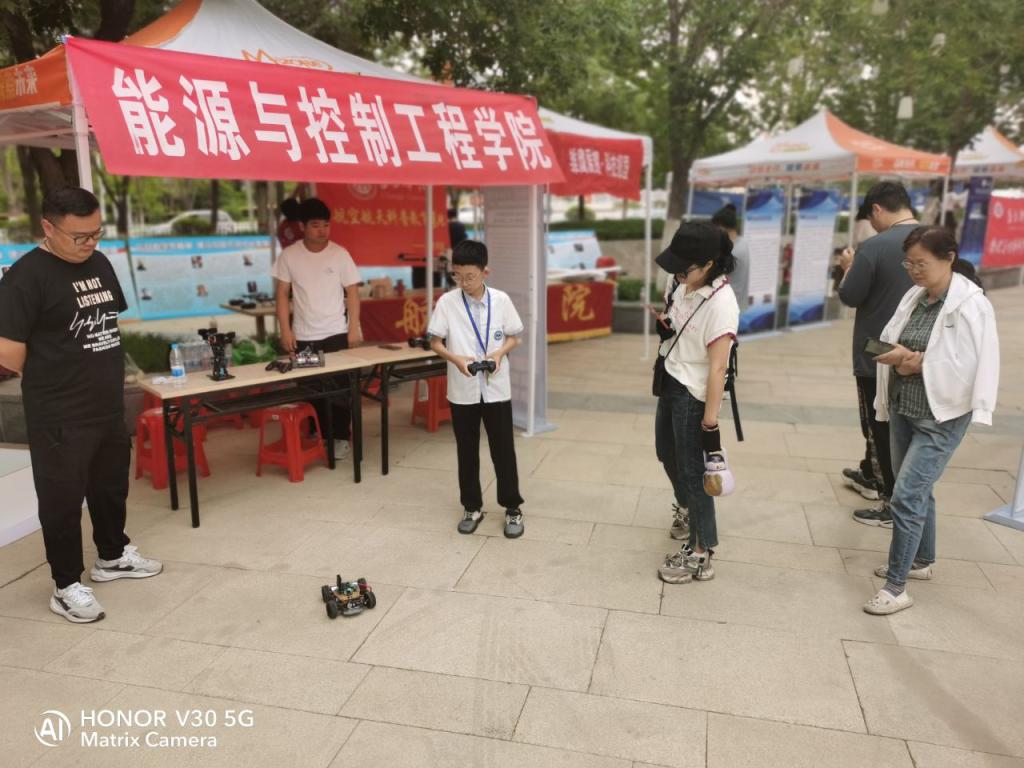 ▲能源與控制工程學院師生指導學生體驗“競速無線遙控汽車”