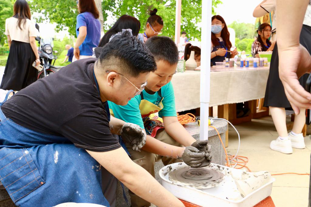 ▲教育科學學院師生指導學生體驗陶藝制作