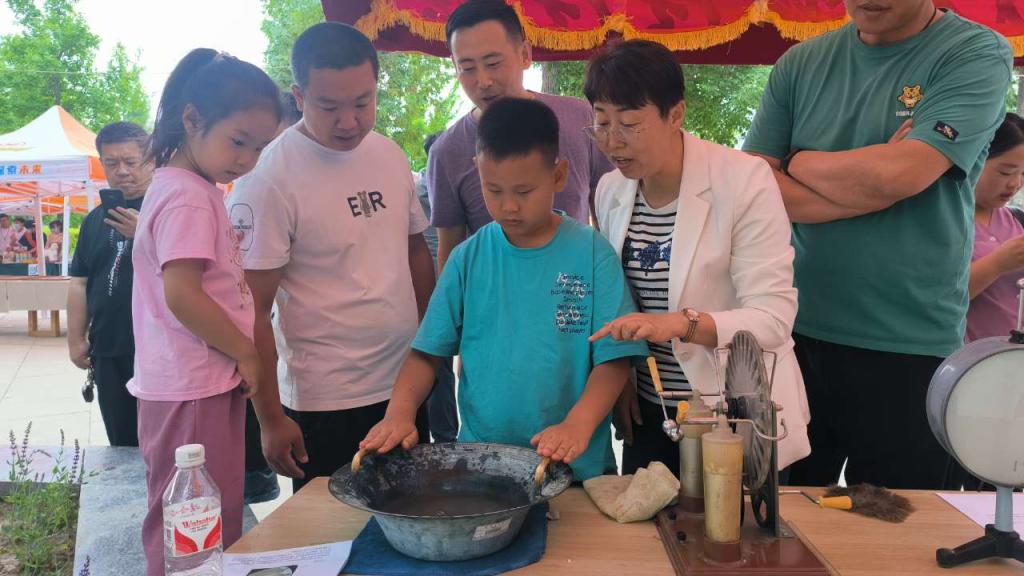 ▲物理與材料科學學院師生指導學生及市民體驗“物理趣味小實驗”