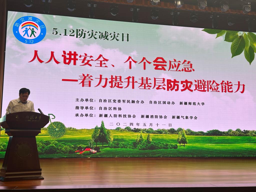 今年5月12日是我國(guó)第16個(gè)“全國(guó)防災(zāi)減災(zāi)日”,5月11日上午,自治區(qū)科協(xié)、自治區(qū)黨委軍民融合辦、自治區(qū)國(guó)動(dòng)辦、新疆消防協(xié)會(huì)、新疆人防協(xié)會(huì)、新疆氣象學(xué)會(huì)等單位在新疆師范大學(xué)開(kāi)展了“5.12”防災(zāi)減災(zāi)主題宣傳活動(dòng)。自治區(qū)科協(xié)黨組成員、副主席姑麗娜爾·吾布力,自治區(qū)黨委軍民融合辦、自治區(qū)國(guó)動(dòng)辦副主任解俊杰及新疆師范大學(xué)師生代表300多人參加了活動(dòng)。