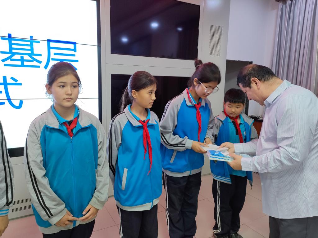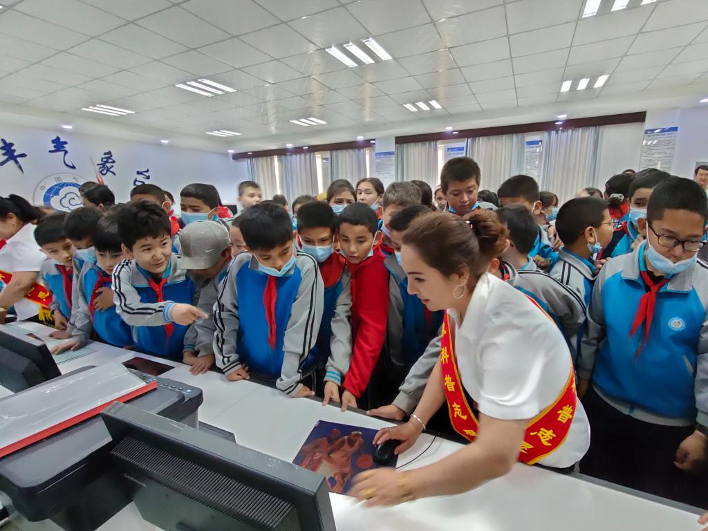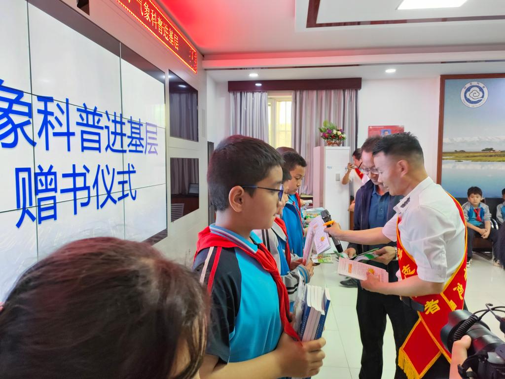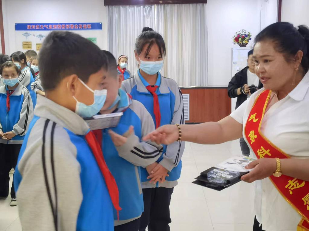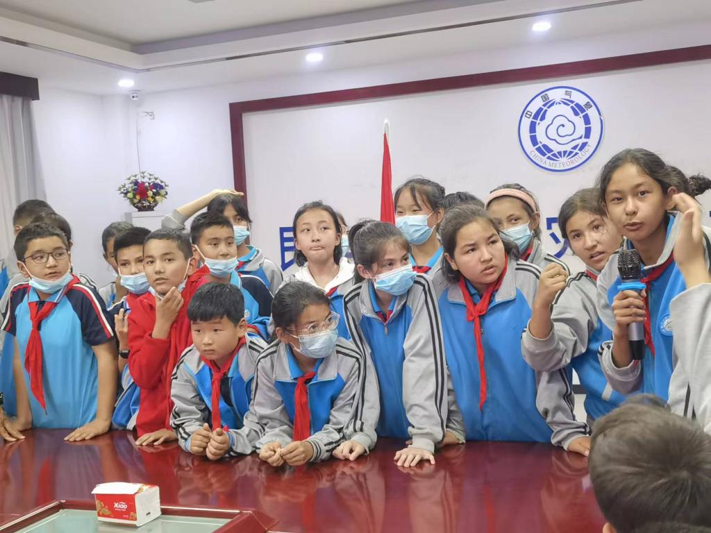 同學(xué)們排著整齊的隊(duì)伍來到民豐縣氣象局,先后參觀了垂直觀測(cè)系統(tǒng)、氣象觀測(cè)場(chǎng)以及農(nóng)業(yè)氣象科普試驗(yàn)基地,觀看工作人員施放探空氣球,參觀科普大篷車、氣象災(zāi)害預(yù)警信號(hào)展板、綜合觀測(cè)室,觀看氣象科普微視頻、參與互動(dòng)問答。活動(dòng)最后,新疆氣象局、新疆氣象學(xué)會(huì)向民豐縣城小學(xué)捐贈(zèng)了氣象科普?qǐng)D書。